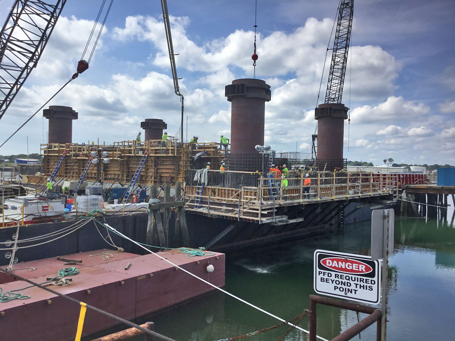 OCME served as Marine Engineer of Record for a super flood basin in front of Dry Dock 1 at the Portsmouth Naval Shipyard. This basin is the first of its kind and was designed for the US Navy to provide new life to an old dry dock that was too shallow for the current fleet of submarines.